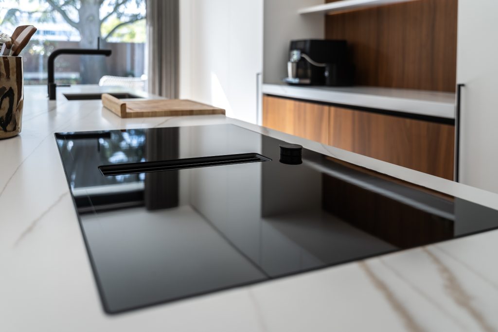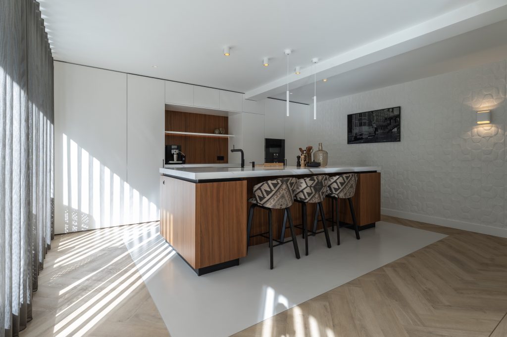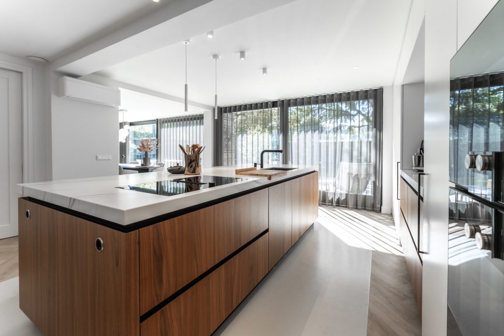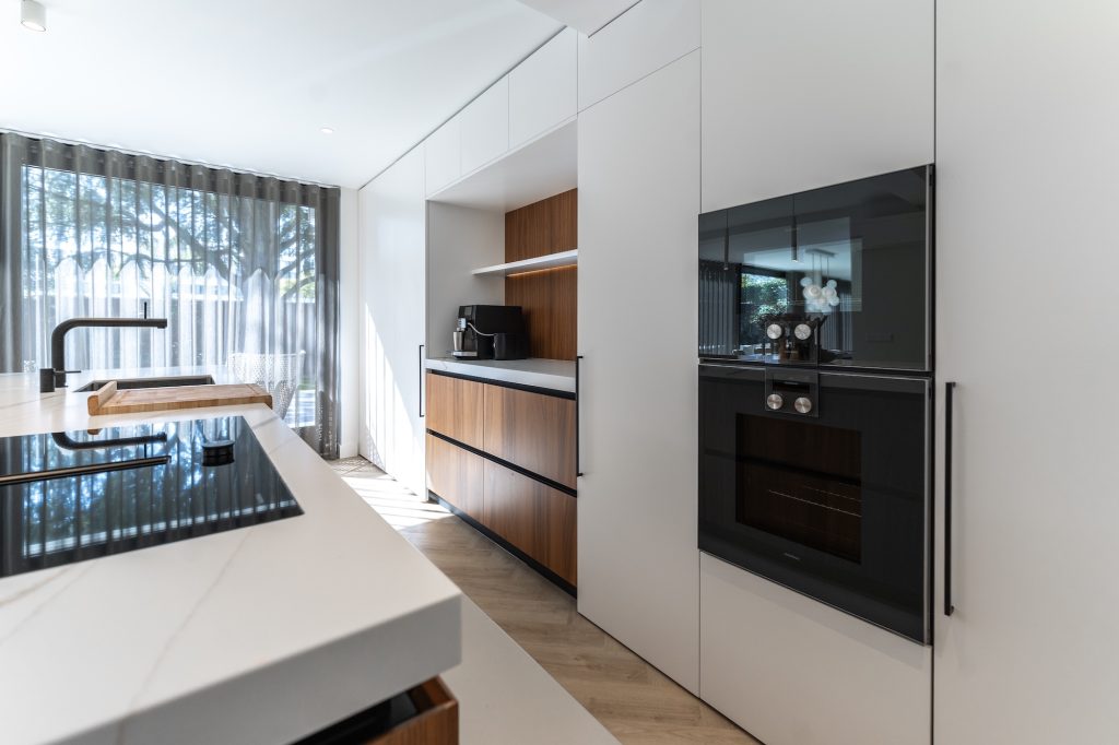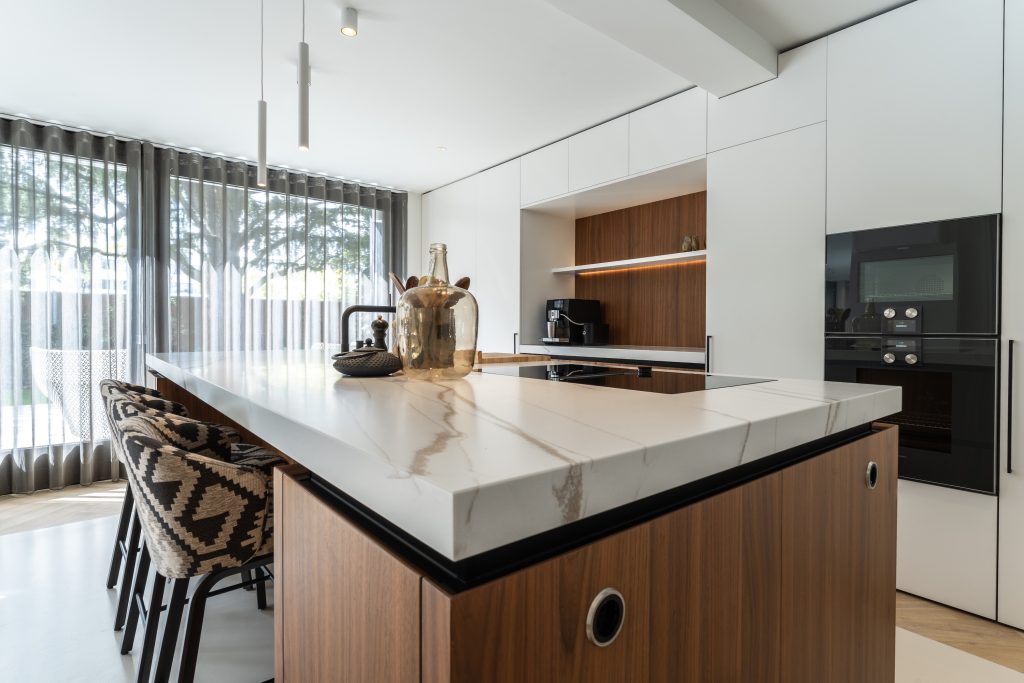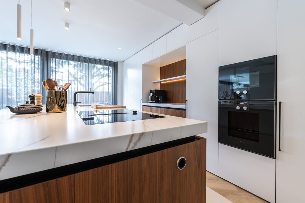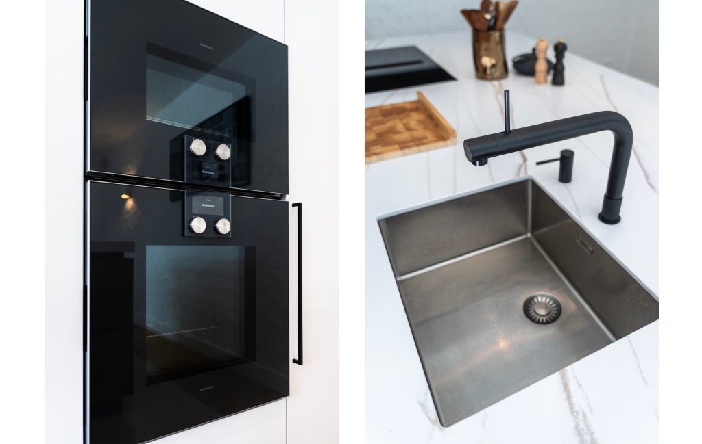 Bakapparaten, combi stoomoven en oven zijn uit de Gaggenau 400 serie,  evenals de inductie kookplaat met afzuiging.